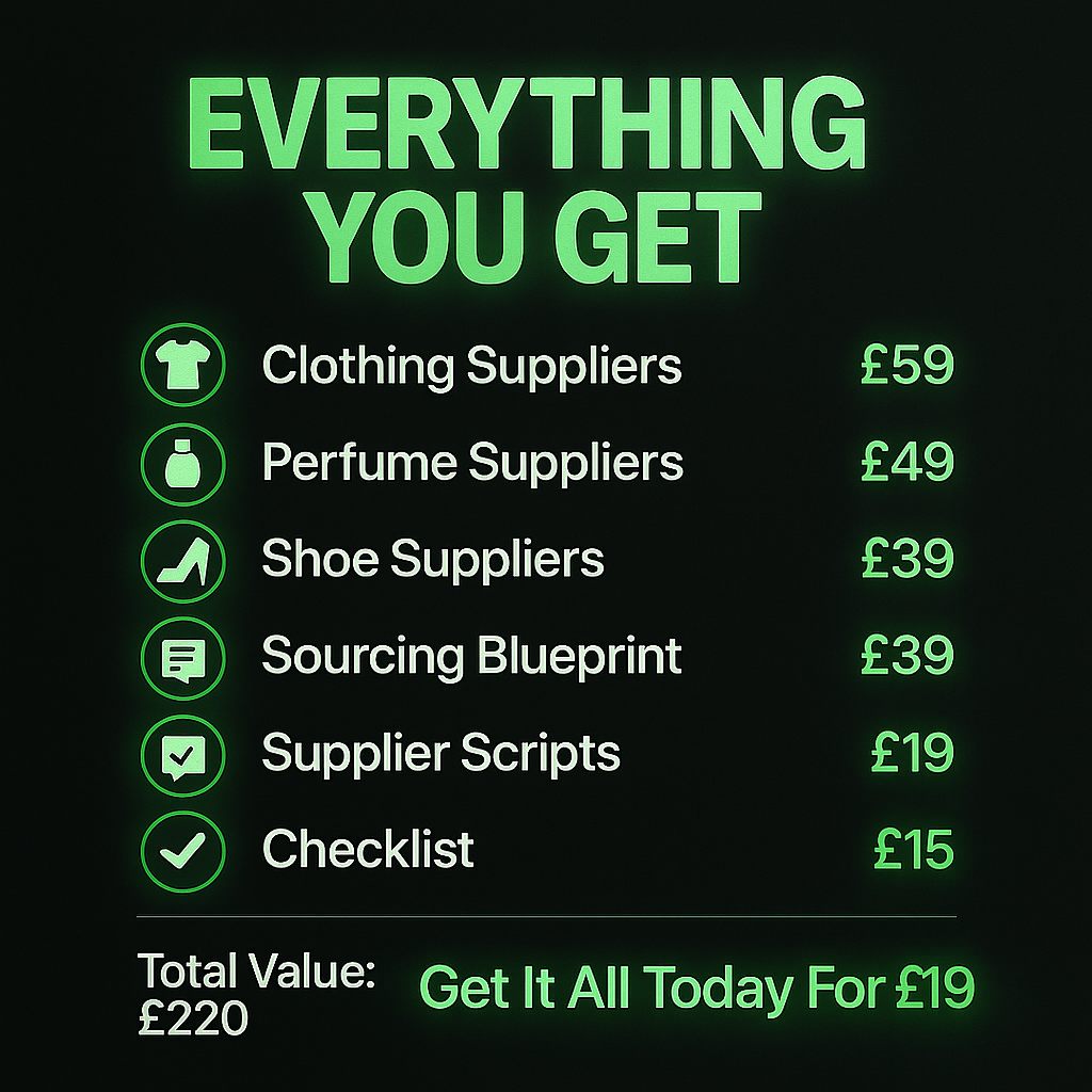 You're purchasing direct access to verified supplier links that allow you to buy trending, in-demand products at low prices. Each link includes detailed product info, the supplier source, and where applicable, instructions on how to use the supplier for reselling purposes.